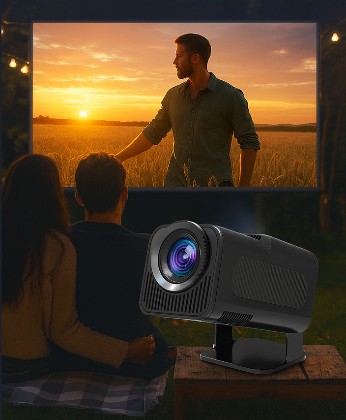 Dzięki jasności 390 ANSI lumenów i dużemu ekranowi do 150 cali, projektor sprawdza się świetnie na tarasie, w ogrodzie czy na biwaku. W warunkach wieczornych lub zacienionych daje kinowy efekt.